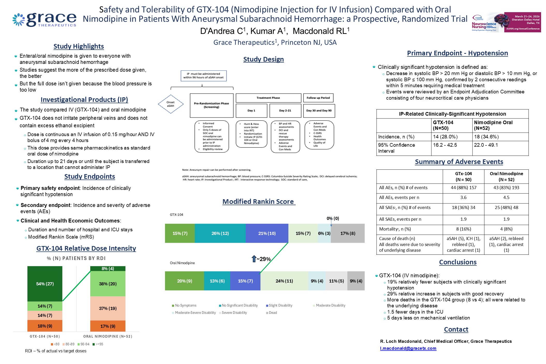 Safety and Tolerability of GTX-104 (Nimodipine Injection for IV Infusion) Compared with Oral Nimodipine in Patients with Aneurysmal Subarachnoid Hemorrhage: A Prospective Randomized Trial